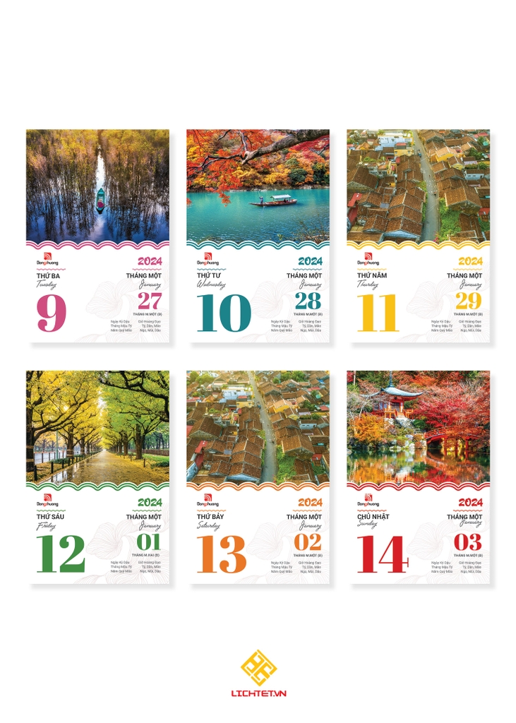 • Bộ lịch bao gồm: túi/hộp đựng, khánh lịch, bloc lịch
